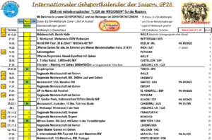 * Bezüglich der Termine 2026 öffne ich bestimmt eine „Büchse der Pandora“? Vor den Hallenmeisterschaften der Masters im Februar in Halle – unserem BEGINN DER LIGA-WETTKÄMPFE – wird es auf jeden Fall! Wir treffen dann die nötigen Entscheidungen nach dem DANN AKTUELLEN STAND! Zielvorgabe: 21.Januar!