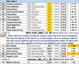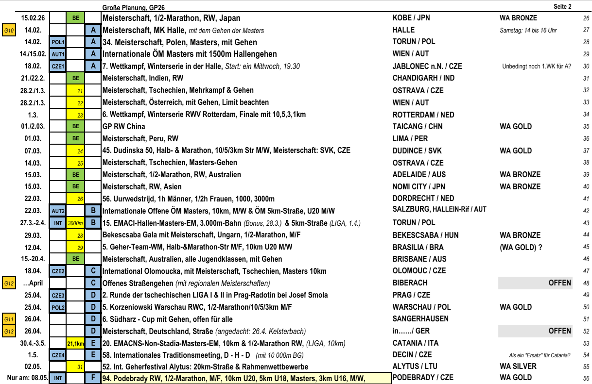 > Unser offizieller Plan 2026 und die Bestenliste 2025 wird dann bis/in Torun verteilt, haben wir in unserer letzten TELKO festgelegt. Vielleicht schaffen wir ja noch bis zum Monatsende auch einen ersten Überblick unserer Rangliste? Mal sehen? Auf jeden Fall nehmen wir das uns vor. Und bitte die Daten überprüfen! Wenn das von Anfang an konsequent erfolgt, schleppen wir Unklarheiten nicht über das Jahr mit. Vielen Dank für eure Hilfe.