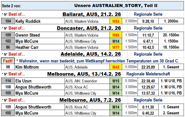 * Die AUSTRALIEN STORY mit den besten Ergebnisse von 9 Wettkämpfen, habe ich noch unter den MEXICO-Ergebnissen, wie angedacht, eingestellt. Zu den Super-Ergebnissen also zurück scrollen!