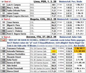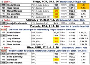 * Zur Information: Von den drei Veranstaltungen, Halle,Torun und Jablonec, konnten wir 51 Ergebnisse in unsere Übersicht einbeziehen, 46 sogar für die entsprechenden Teams werten. Gleich in der ersten Runde konnten wir alle Punkte von Platz 1 bis 10 vergeben. Was schon als Erfolg anzusehen ist. Wir wußten nicht, wie das Vorhaben ankommt. Mit der Übersicht (gerne werden Verbesserungsvorschläge dazu angenommen) wird sich der reale Kampf um Punktvergabe weiter erhöhen. In diesem Sinne….