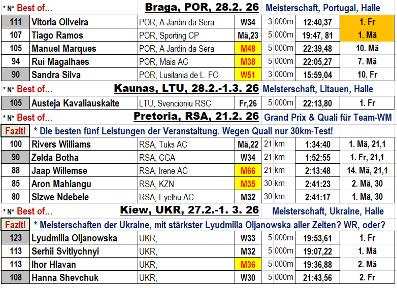 * Wenn am 7. März mein „Berg Arbeit“ hier nicht eingestellt ist, sehe ich ein, ich schaffe das nicht mehr. PUNKT!! Denn mit Dudince, am 7. März wird alles andere Vorgeplänkel. Außerdem verliere ich die Übersicht. 23 Wettkämpfe liegen noch ausgedruckt, zum Teil schon bewertet auf meinem Tisch. Nun übe ich auf MICH! selbst diesen Druck aus, den ich mir zu Jahresanfang als SICHERHEIT FÜR MICH, VOR MIR, selbst gestellt habe. Weiter alles Reduzieren, um diese Idee fortführen zu können! Fragt mich erst nach dem 8.März, INTERNATIONALER FRAUENTAG, wie das ausgegangen ist? Und nun weiter…: