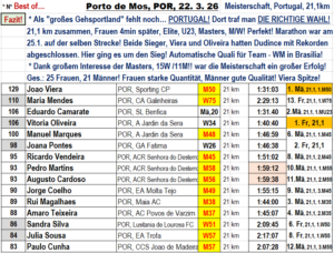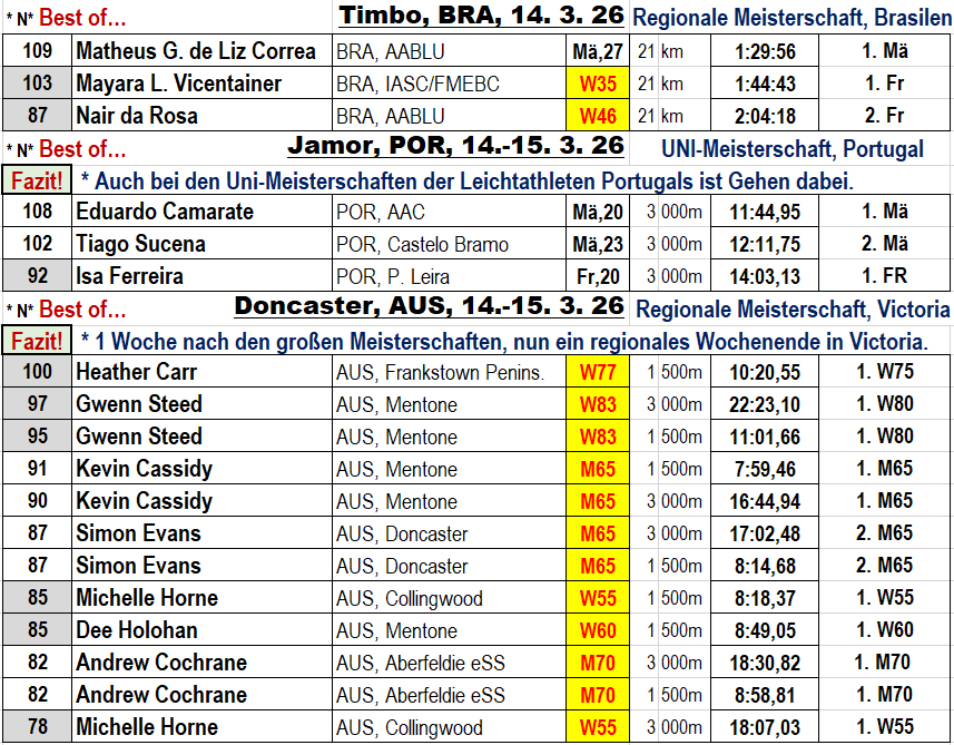 * Interessant, hier, auch eine Meldung aus Portugal. Die UNI-Meisterschaften Portugals fanden am Wochenende, 14./15.3. in Jamor statt. Eigentlich als „Kurzbahn“ in der Halle vorgesehen, fanden sie 2026 am 15.3. auf der 400m-Bahn, auf der Freiluftanlage statt.