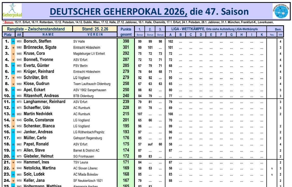 24Feb. 2026 GP26, Rangliste nach DM Udo Schaeffer ⋅ Schreibe einen Kommentar * Nun ist es Zeit für den aktuellen Zwischenstand unserer Rangliste, die TOP25: Kategorie Aktuell