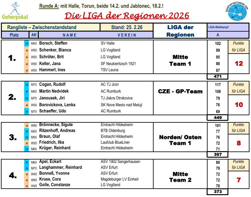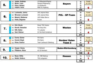 * Eine neue Übersicht, die nun nach jeder Runde der LIGA der REGIONEN erscheinen wird. In der ersten Runde erübrigt sich der Zwischenstand nach Punkten. Der kommt nach Runde B auch noch „neu“ hinzu. Schaut mal drüber, ob es euch so gefällt und ob alle nötigen Informationen enthalten sind.