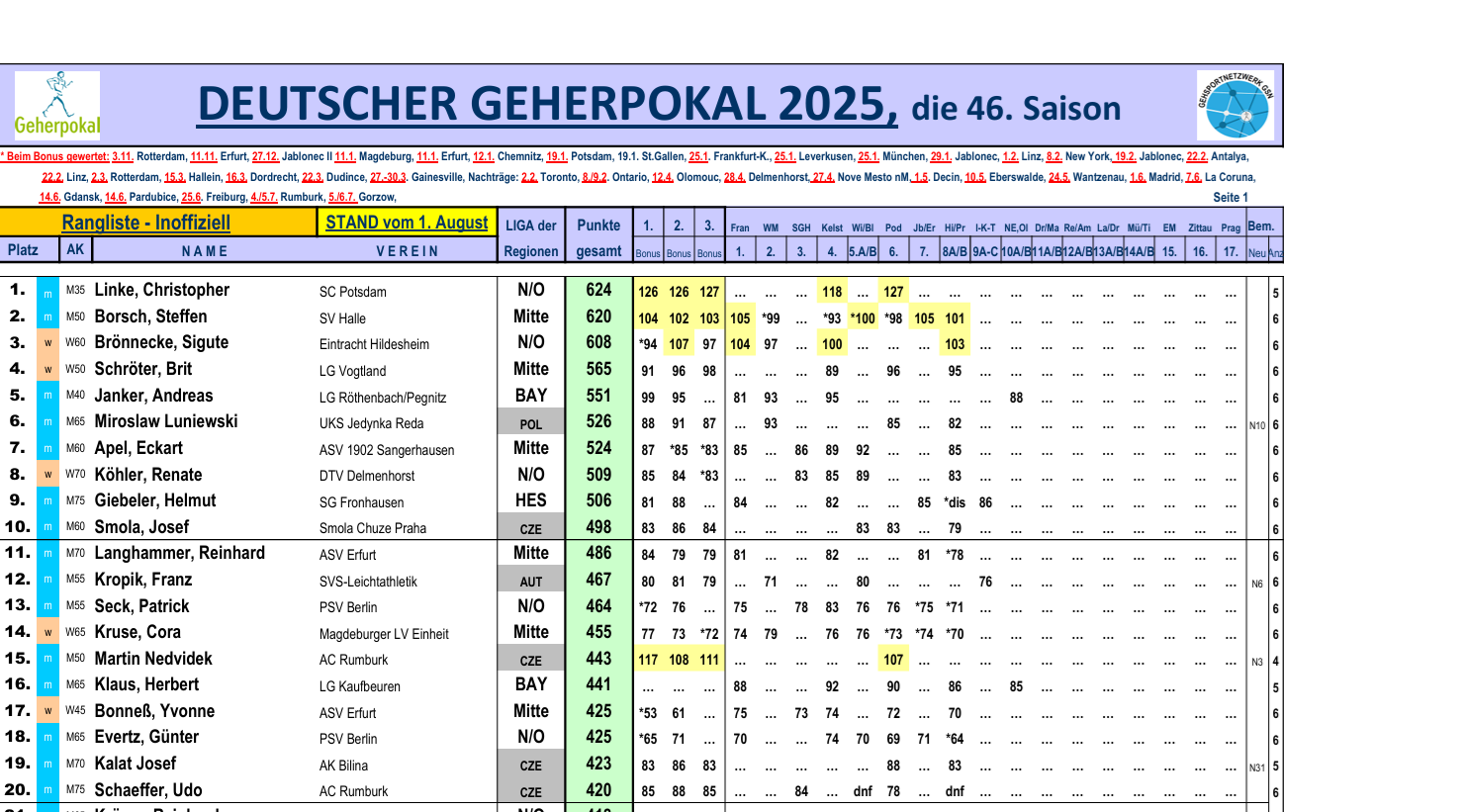* Heute endet der Juli, in einer Stunde ist August! Zeit dafür den Endspurt für diesen ereignisreichen Monat zu beginnen. Heute endlich mit Chinas Straßenmeisterschaften 2025! Jetzt erst? Einerseits, weil die dort erreichten Zeiten nicht, wie allgemein ja immer erwartet, überragend waren. Andererseits aber viele Informationen über die „normale“ Berichterstattung hinaus bestehen, die alle auch erst geprüft und vor allem! dann auch verarbeitet!!! werden sollten. Also, los jetzt…