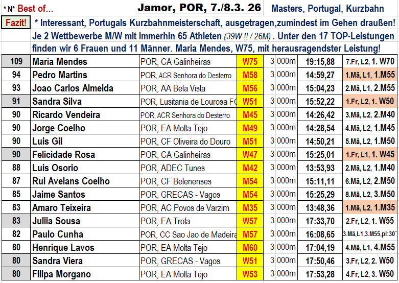 * Es geht einfach nicht! Beim Durchhalten, „nur“ von den 95 geplanten Veranstaltungen zu berichten, habe ich dieses Vorhaben ohne meine Gefühle zu besänftigen, gestartet. Aber, sagt doch selbst, ist es nicht wichtig und schön, zu wissen, was bei den Portugal Masters im Gehen los ist (und im Verhältnis zu Deutschland, wie viele da mitmachen?).