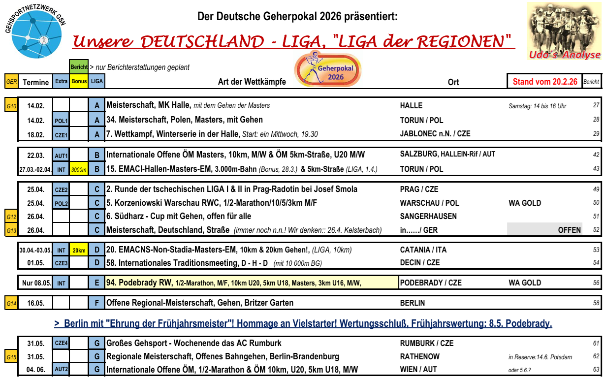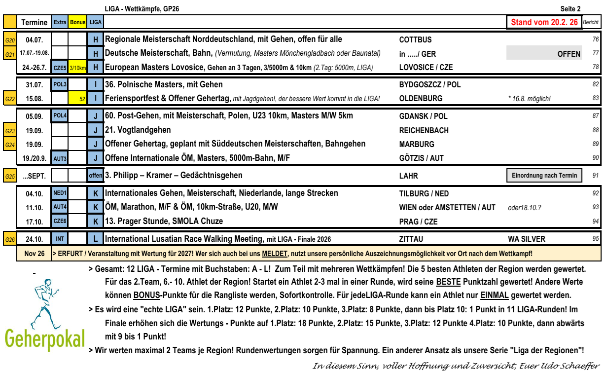21Feb. 2026 Planung, GP26: DIE LIGA Udo Schaeffer ⋅ Schreibe einen Kommentar * Obwohl immer noch nicht alle Wettkämpfe in Deutschland festgezurrt sind, schade, haben wir eine Möglichkeit gefunden, wie wir nun in dieser Saison verfahren werden (unabhängig, wo was noch wie stattfindet). Zuerst stellen wir unsere LIGA 2026 vor. Kategorie Aktuell