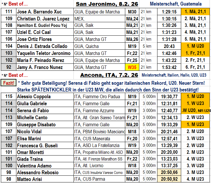 * Das waren jetzt Ancona und San Geronimo. Nun folgen hier noch Cieza, Torun und Jablonec, ehe wir uns an die Schwerpunkte des Wochenende machen: